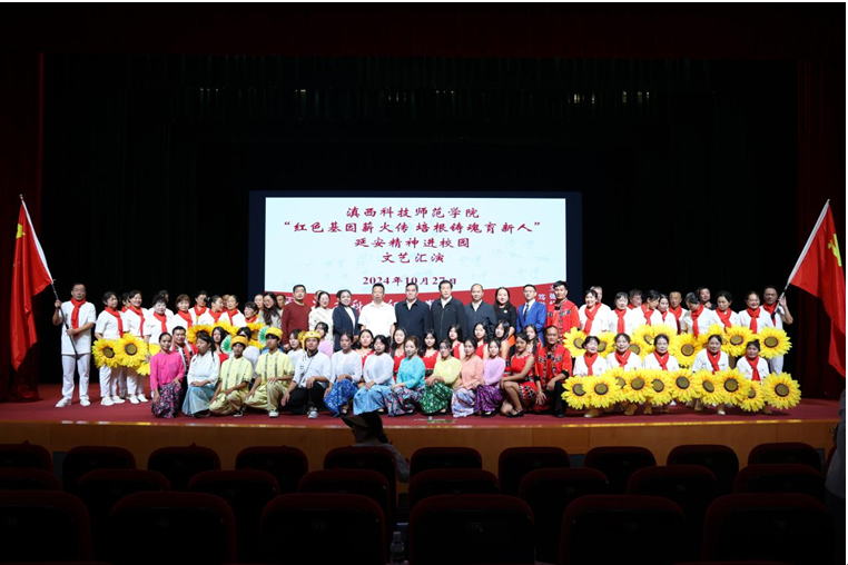 10月28日,滇西科技师范学院举办“红色基因薪火传 培根铸魂育新人”延安精神进校园文艺汇演活动,临沧市社会科学界联合会、临沧市延安精神研究会、云县延安精神研究会、临沧市桑嘎艺术学校以及我校师生,共计600人参加此次活动。